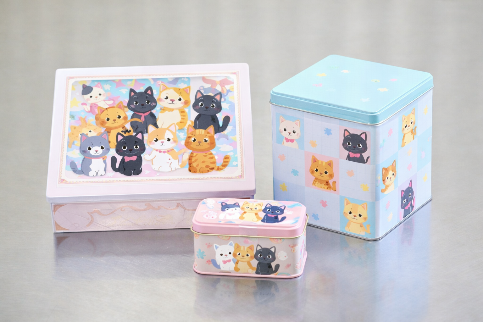さまざまな菓子缶商品のアッセンブリー作業を行っています。